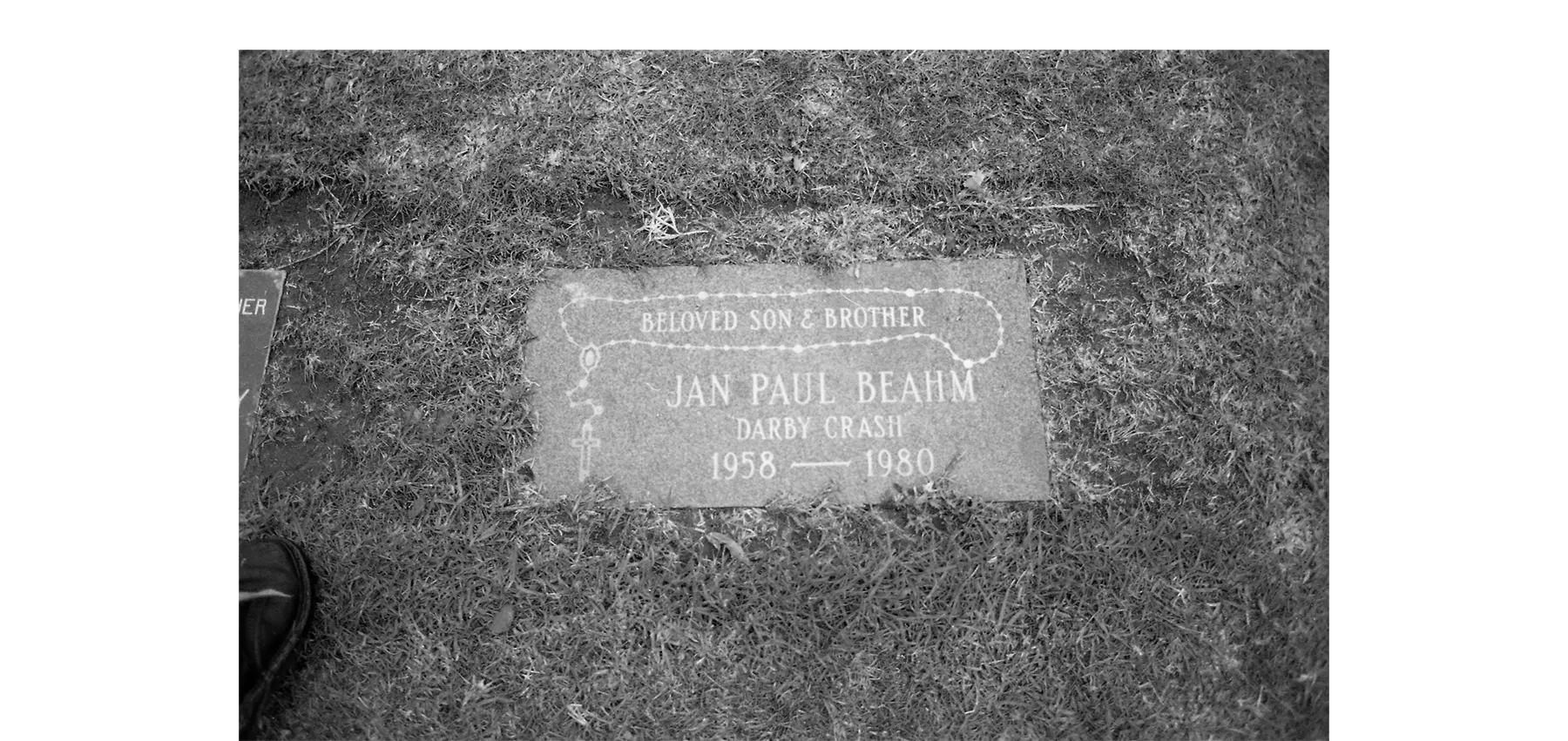 A close-up shot of Darby's grave marker.